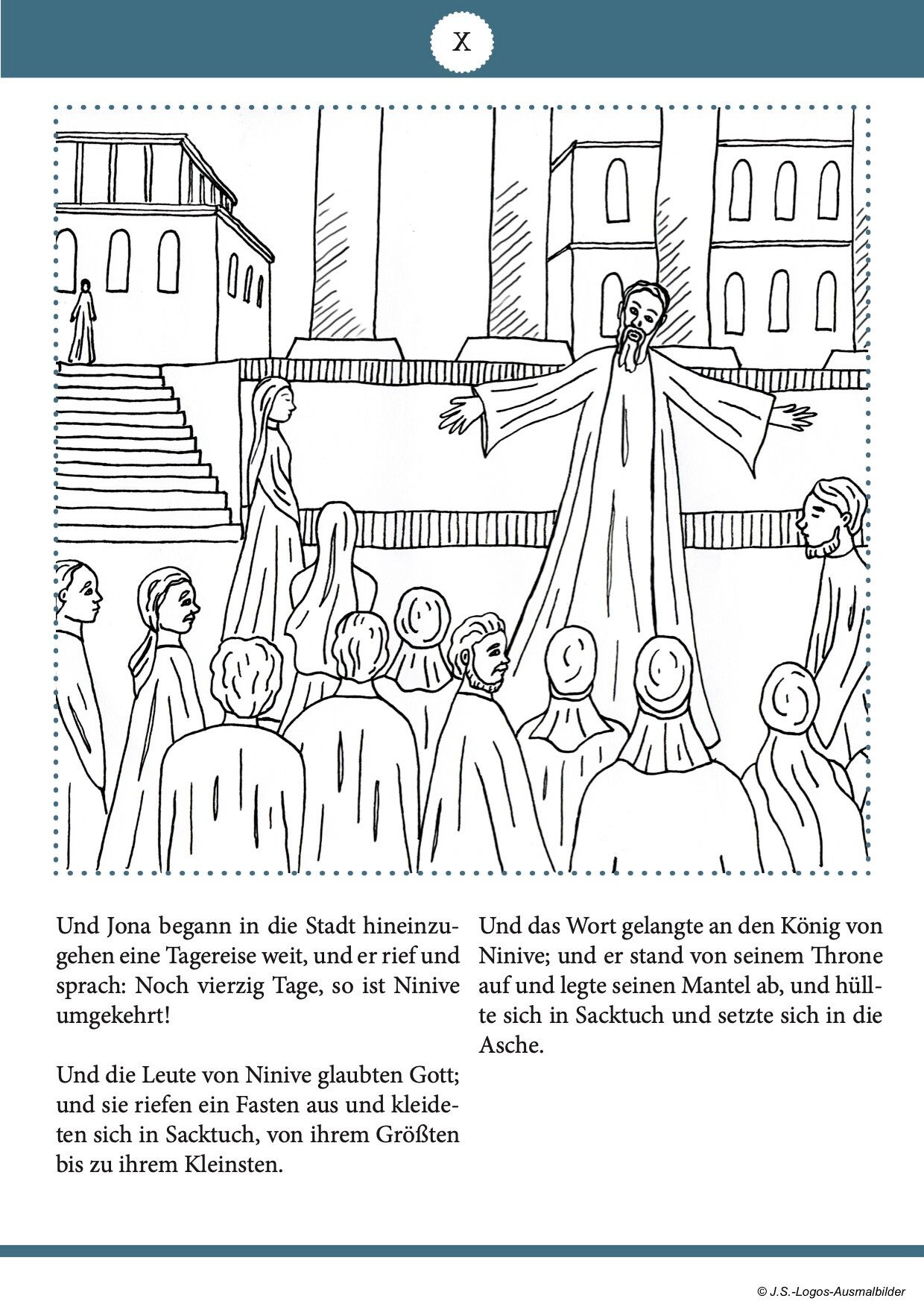 Die Geschichte des Propheten Jona ist eine besondere Geschichte im Alten Testament. Von Gott berufen, den Bewohnern der Stadt Ninive zu predigen, versuchte Jona vor Gott wegzulaufen und bestieg ein Schiff nach Spanien. Doch Gott schickte einen heftigen Sturm. Jona ließ sich von Bord werfen und Gott sandte einen großen Fisch, um Jona zurück an Land zu bringen. Jona sah ein, dass er vor Gott nicht weglaufen kann und ging nach Ninive, um der Bevölkerung das Gericht Gottes und Umkehr von Sünden zu predigen, woraufhin sich die ganze Stadt zu Gott bekehrte.